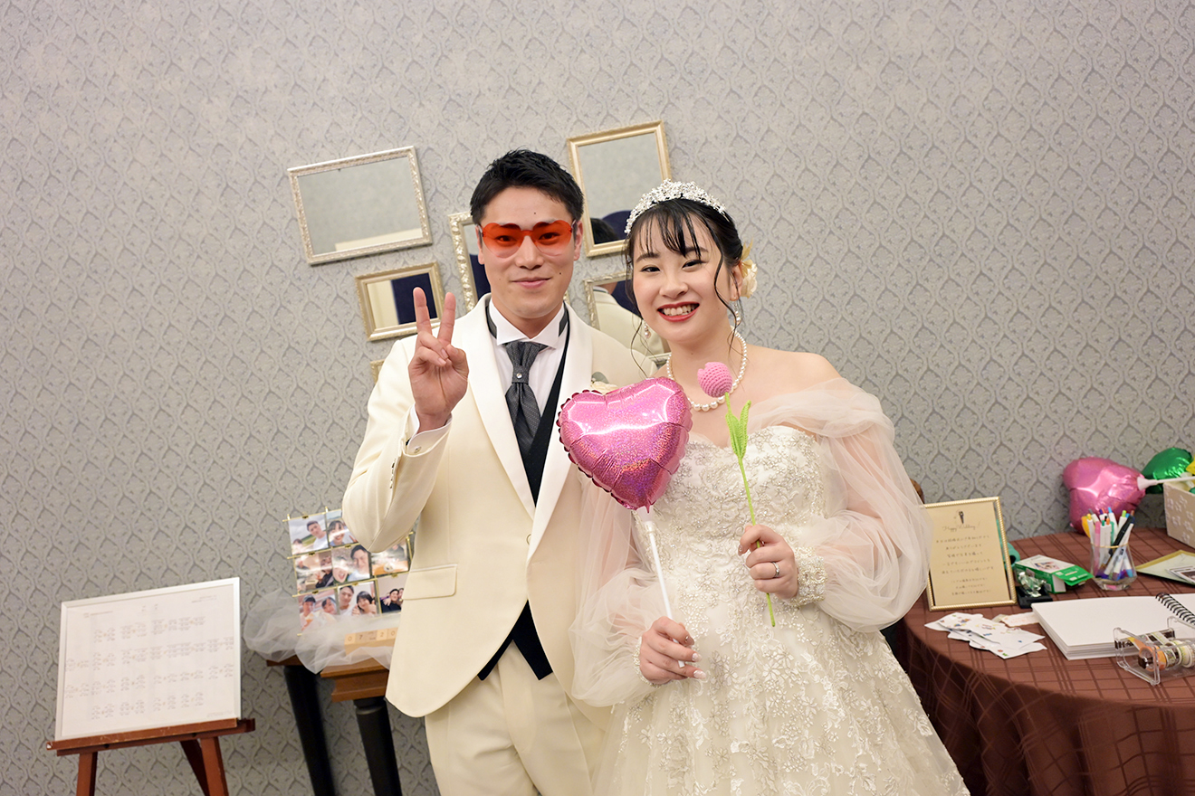 Hiroto & Aya2025.07.20参加者みんなが楽しめる結婚式挙式会場神殿披露宴会場プレシャスホールinterviewマリエール神水苑を選んだ理由をお聞かせください神前式の会場が素敵だったため 挙式・披露宴でこだわったことは?演出(鏡開き・ペンライト再入場など) 当日印象に残ったシーンは?再入場のシーン これから結婚式を挙げる方へメッセージをお願いします準備は大変ですが、本番はそれ以上に楽しいです。 前の記事ウェディングレポート一覧次の記事