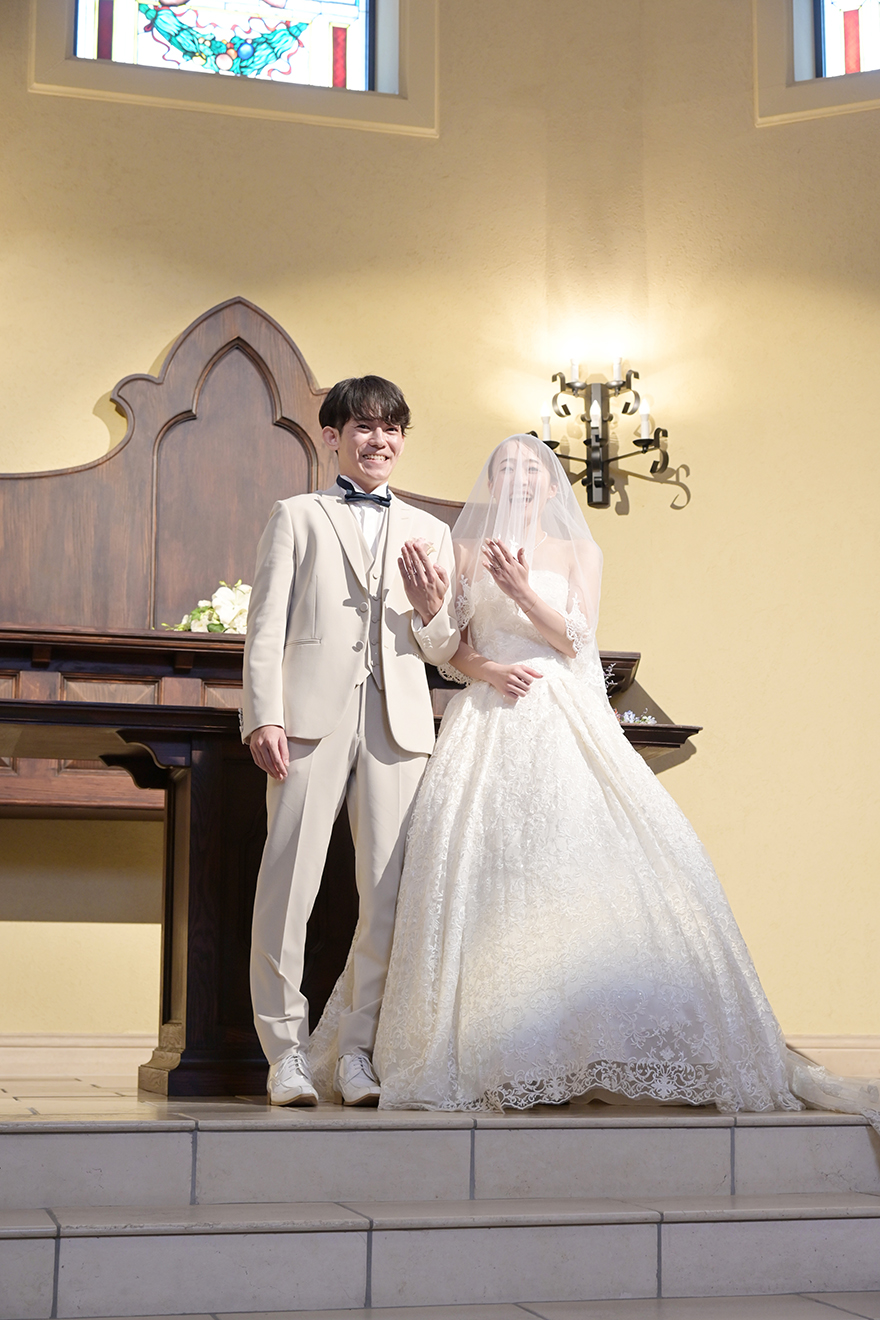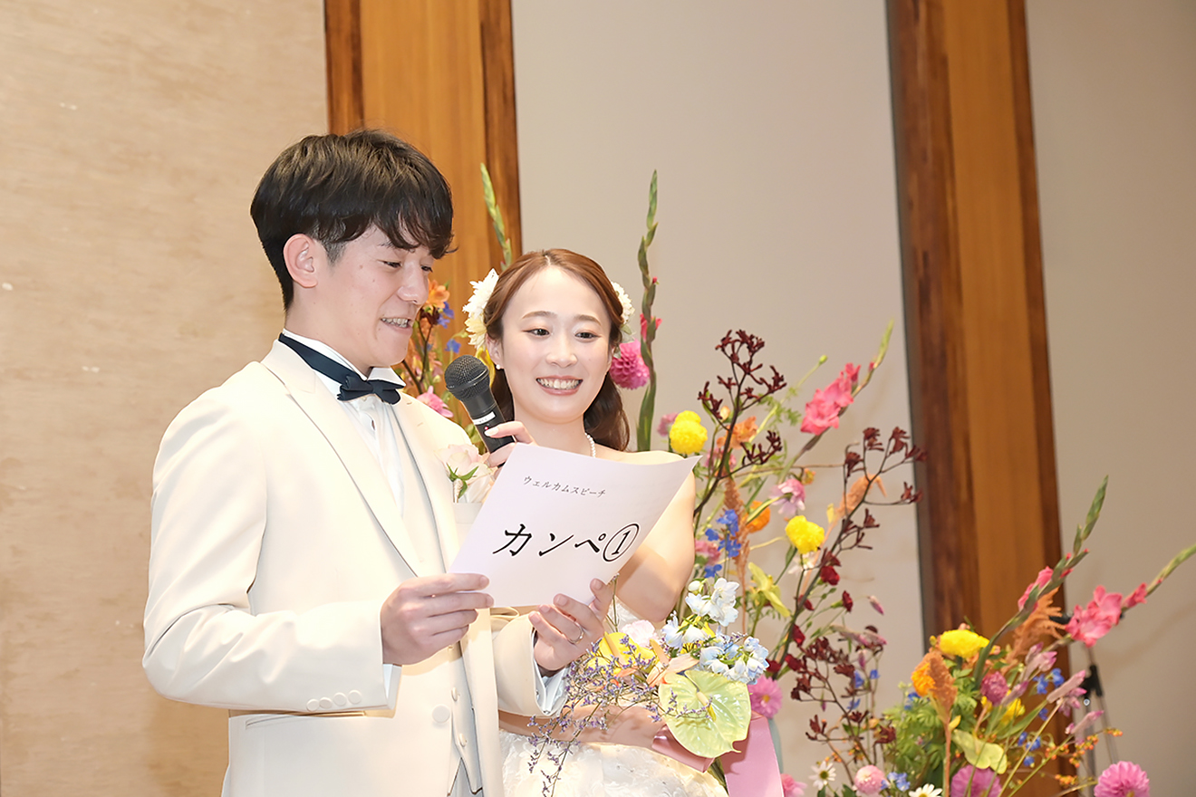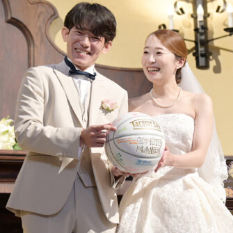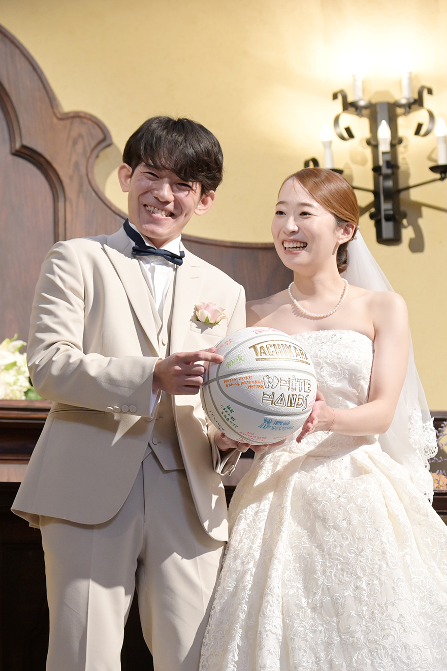 Ryo & Honoka2025.10.11バスケットボール挙式会場大聖堂披露宴会場アリアグレイスinterviewマリエール神水苑を選んだ理由をお聞かせください広くて出席者がゆっくりできそうだったから 挙式・披露宴でこだわったことは?みんなが楽しめるようにしたこと 当日印象に残ったシーンは?たくさんの人がフリースローを決めてこと、最後の歌 これから結婚式を挙げる方へメッセージをお願いします一瞬で過ぎてしまうので精一杯楽しんでください! 前の記事ウェディングレポート一覧次の記事