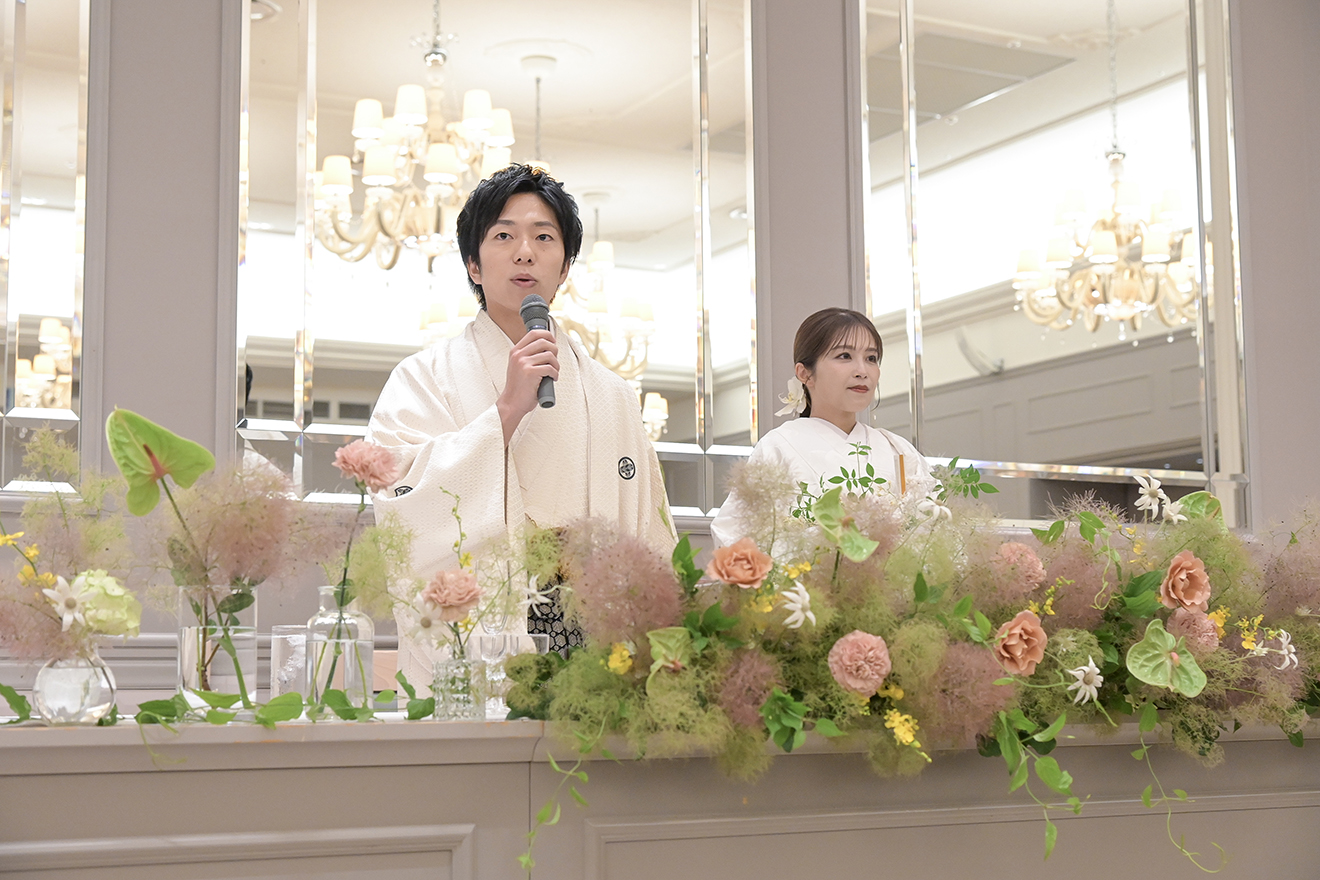 Yoshito & Misaki2025.05.31感謝 & 温かい式挙式会場大聖堂披露宴会場プレシャスホールinterviewマリエール神水苑を選んだ理由をお聞かせください・格式の高い雰囲気・立派なチャペルと庭園 挙式・披露宴でこだわったことは?ゲストへのおもてなしになるよう料理と花の装飾などをこだわりました 当日印象に残ったシーンは?お手本バイトとビールサーブ! これから結婚式を挙げる方へメッセージをお願いします準備は大変でしたが、スタッフの皆さんの協力のもと、やって良かったと思える結婚式になりました。皆さんも準備は大変だと思いますが、頑張ってください! 前の記事ウェディングレポート一覧次の記事